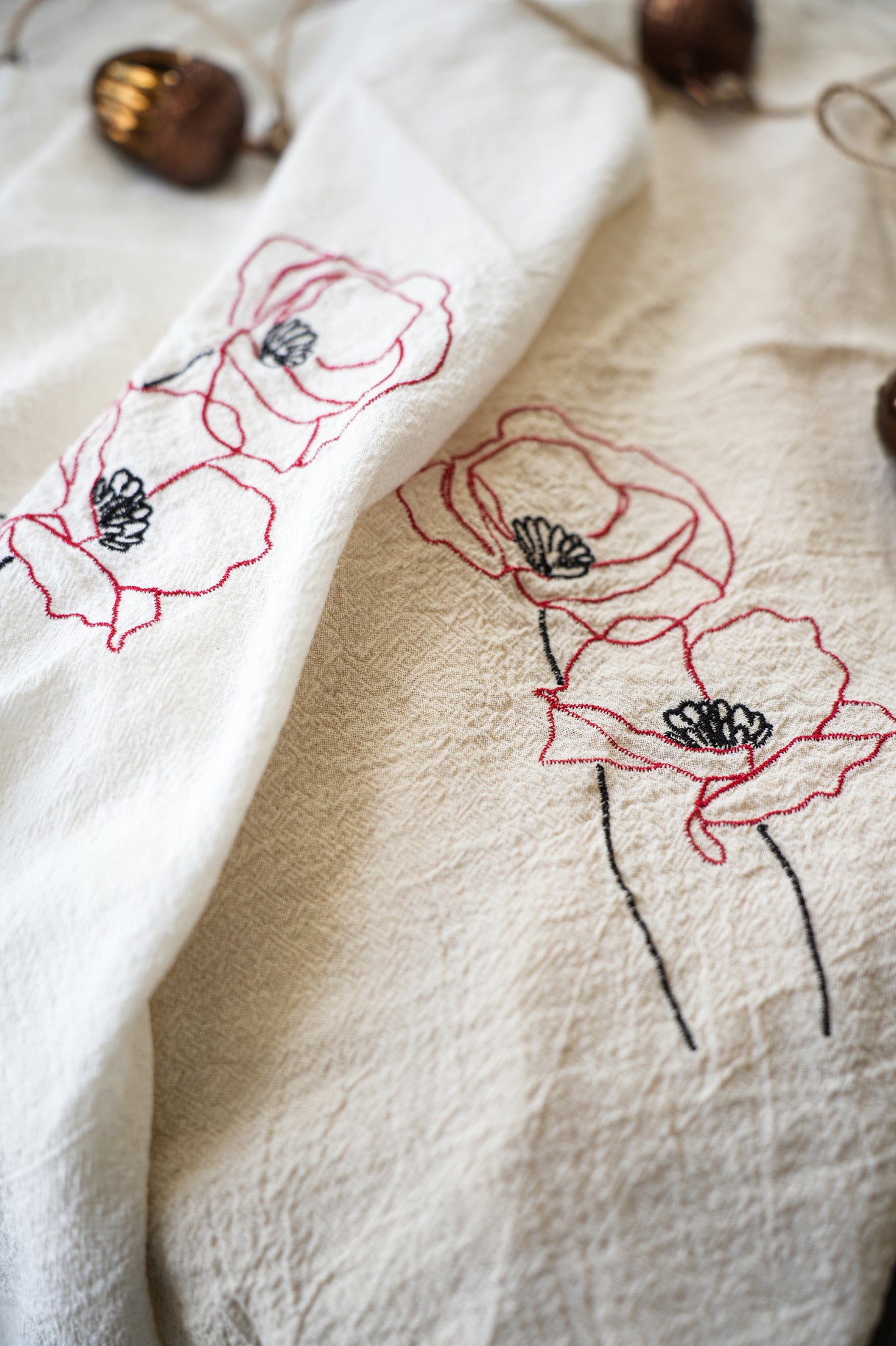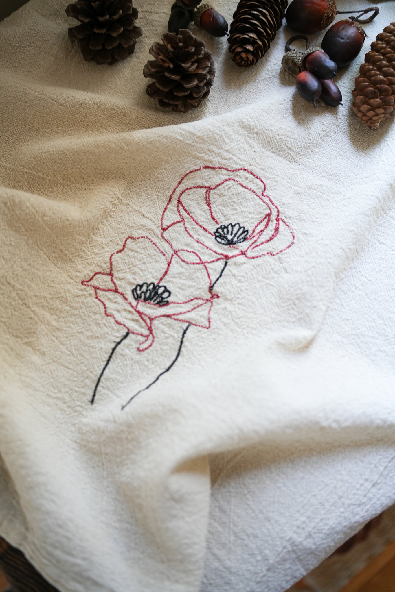 • Load image into Gallery viewer, Poppy Embroidered Flour Sack Dish Towel